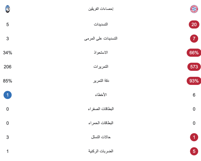 تمكن بايرن ميونخ من تسجيل ثلاثة أهداف في مرمى أتالانتا بعد مرور ساعة من مباراة إياب الدور ثمن النهائي من دوري أبطال أوروبا.