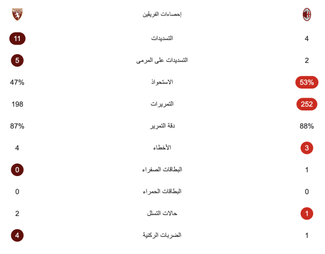 إحصائيات الشوط الأول: