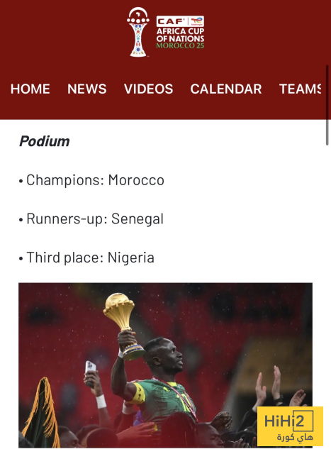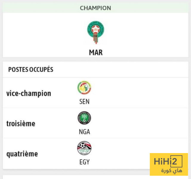 الكاف نشر في الساعات الأخيرة تعديل الترتيب النهائي لكأس أمم إفريقيا ، حيث أصبح منتخب أسود أطلس في المركز الأول كأبطال للقارة ، بينما تراجعت السنغال لمركز الوصيف ، مع إبقاء نيجيريا بالمركز الثالث .