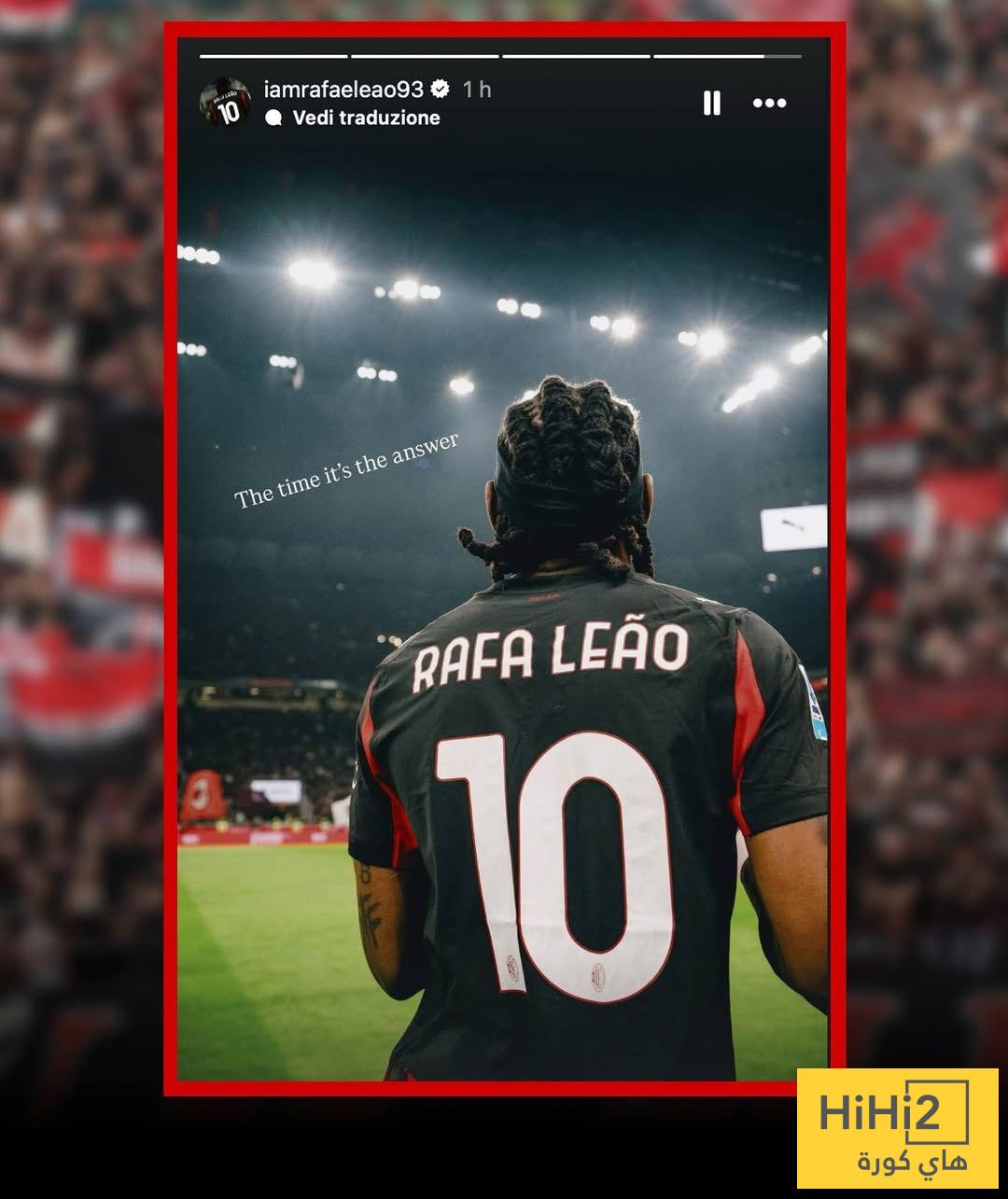 بعد موجة الانتقادات الأخيرة بسبب سلوكه في مباراة لاتسيو، اختار رافاييل لياو أن يرد بطريقة غامضة على وسائل التواصل الاجتماعي، حيث كتب في أحدث منشور له: “الوقت هو الإجابة”، الرسالة التي أعطت انطباعًا بأن اللاعب يفضل ترك الأحداث تأخذ مجراها، معتمداً على المستقبل لإثبات قيمته الشخصية والمهنية، بعيدًا عن الانتقادات الحالية.