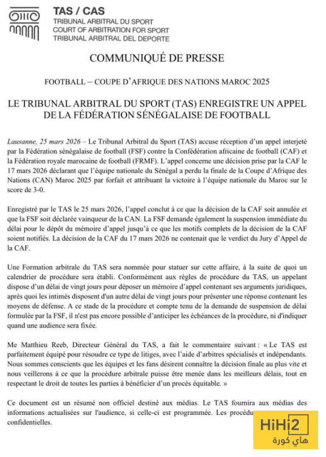 أعلنت محكمة التحكيم الرياضي ( الكاس ) رسميًا عدم صحة الأنباء المتداولة بشأن إصدار أي قرار يخص تعليق لقب كأس أمم إفريقيا ، مشددة على أن المنتخب المغربي لا يزال بطلًا للقارة .