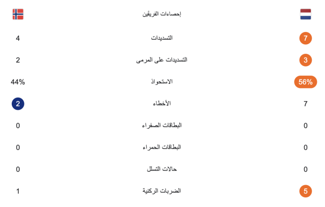 انتهى الشوط الأول من مباراة هولندا والنرويج والتي تقام ضمن استعدادات المنتخبين لكأس العالم 2026.