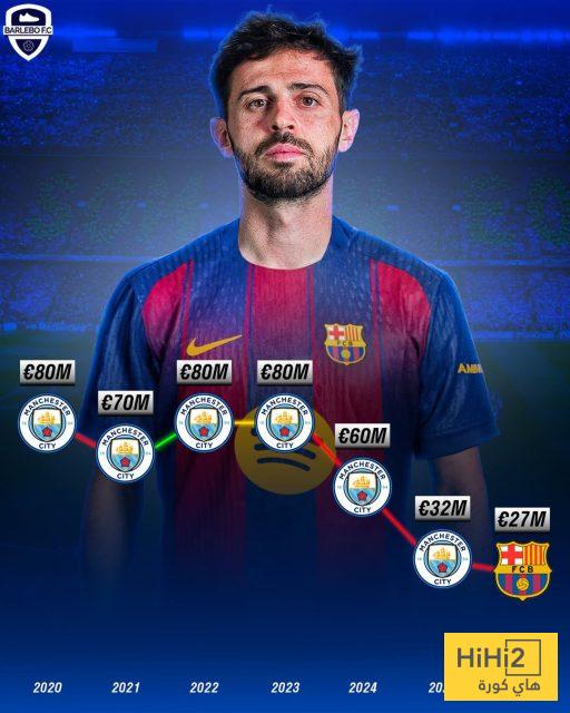 تشهد القيمة السوقية للنجم البرتغالي برناردو سيلفا تراجعًا لافتًا أثار الكثير من التساؤلات في الشارع الكروي الأوروبي، بعدما هبطت من 80 مليون يورو في ذروة تألقه مع مانشستر سيتي إلى 27 مليون يورو فقط بحلول 2026، وفقًا للتقديرات المتداولة.