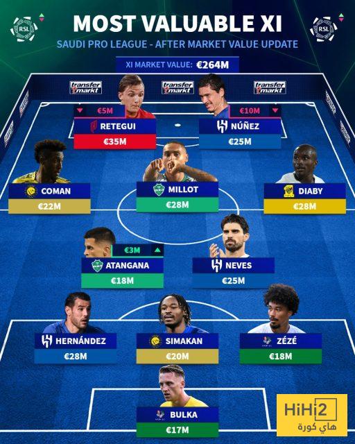 أظهرت بيانات موقع ” ترانسفير ماركت ” تراجعًا في القيمة السوقية لتشكيلة نادي الاتحاد خلال الفترة الأخيرة ، حيث انخفضت بنحو ( 2 مليون يورو ) ، في مؤشر يعكس تراجع مستويات بعض اللاعبين مقارنة بالفترات السابقة .