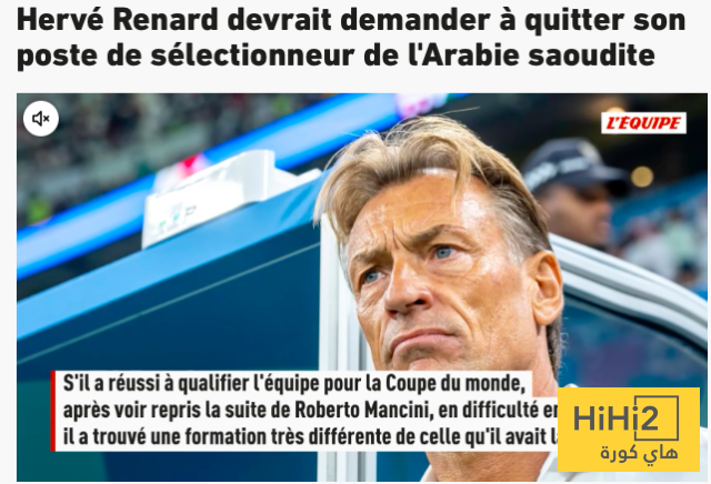 قبل دقائق وعلى ذمة صحيفة ليكيب الفرنسيه ( L’Équipe ) وهي الصحيفه الاكثر رزانه ومصداقيه تحدثت عن مواطنها هيرفي رينارد مدرب المنتخب السعودي حاليا وعن مستقبله حيث كتبت التالي :