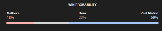 نسبة فوز الريال تصل الى 59 % ، والتعادل 23 % أما الخسارة 18 %.