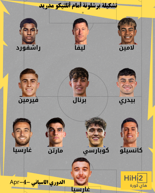 خط الهجوم : لامين يامال ، ليفاندوفسكي ، راشفورد