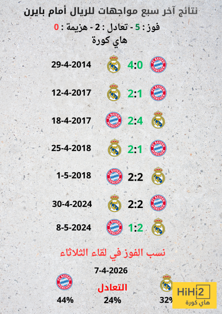 32 % للريال ، 44 % للبايرن ، 24 % للتعادل