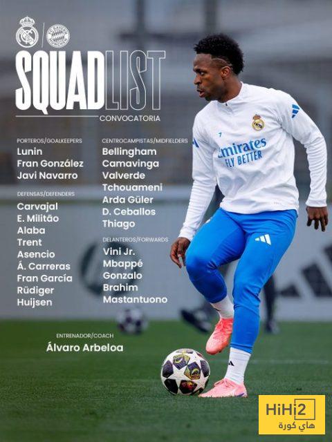 أعلن ألفارو أربيلوا ، المدير الفني لنادي ريال مدريد عن قائمة فريقه الرسمية لمباراة بايرن ميونخ ، المقرر إقامتها مساء اليوم الثلاثاء ضمن فعاليات ذهاب دور ربع نهائي دوري الأبطال .