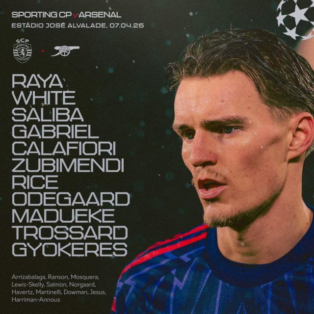 أعلن ميكيل أرتيتا عن تشكيلة أرسنال الرسمية لمباراة سبورتينغ لشبونة في ذهاب الدور ربع النهائي من دوري أبطال أوروبا.