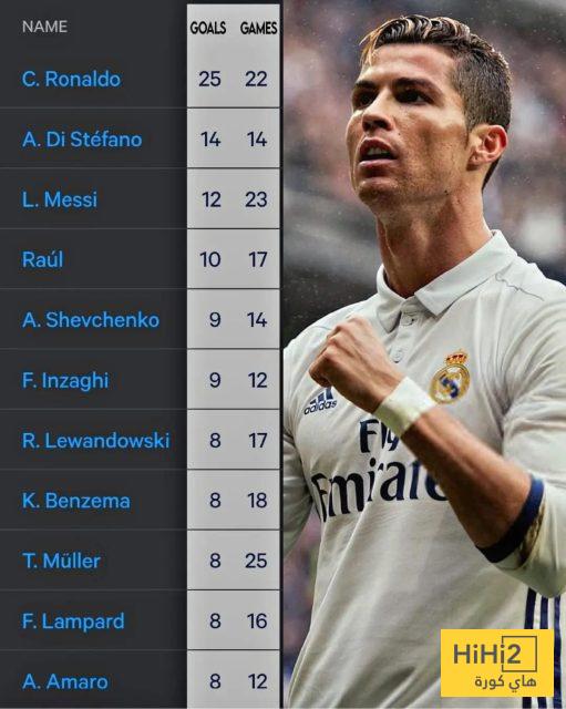 رغم رحيله عن اوروبا منذ سنوات لا يزال المهاجم البرتغالي كريستيانو رونالدو لاعب نادي النصر هو الهداف التاريخي لمباريات الدور الربع النهائي لمسابقة دوري ابطال اوروبا .