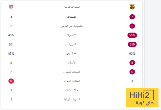 احصائيات الشوط الاول من مباراة برشلونة واتلتيكو