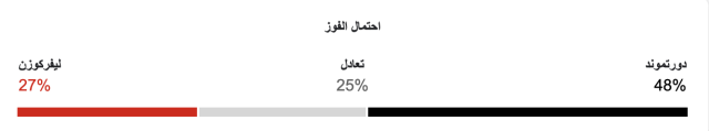 نسبة فوز بوروسيا دورتموند 48%، ونسبة فوز بايرن ليفركوزن 27%، ونسبة التعادل 25%.