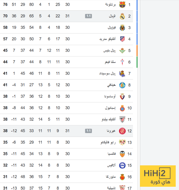اليكم ترتيب الليغا