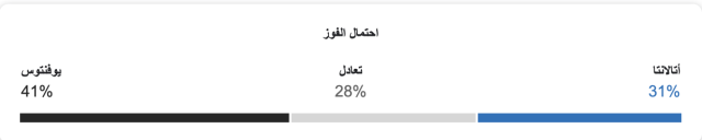نسبة فوز يوفنتوس 41%، ونسبة فوز أتالانتا 31%، ونسبة التعادل 28%.