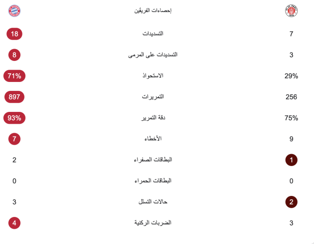 إحصائيات المباراة: