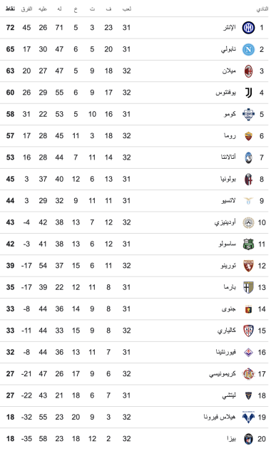 رفع البيانكونيري رصيده من النقاط إلى 60 نقطة، لكنه سينتظر نتيجة مباراة إنتر ميلان وكومو غدًا لمعرفة موقفه النهائي في الجدول.