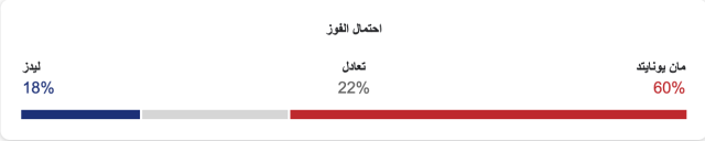 نسبة فوز مانشستر يونايتد 60%، ونسبة فوز ليدز يونايتد 18%، ونسبة التعادل 22%.