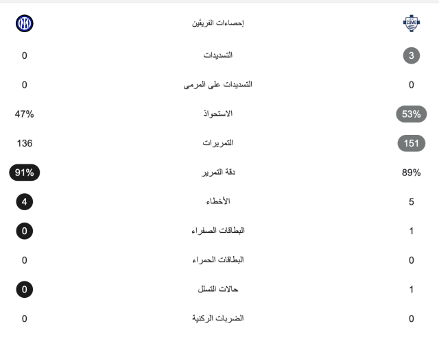 يحاول الإنتر حتى الآن تسجيل الهدف الأول لكن دون جدوى، مع محاولات واستحواذ أكثر من كومو على مجريات اللعب.