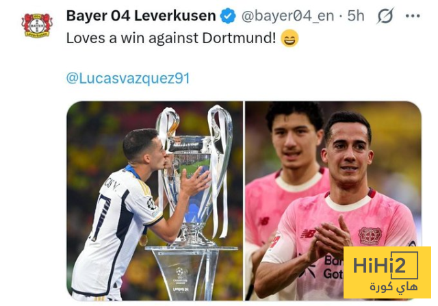 الحساب الرسمي لنادي ليفركزن نشر صورة لوكاس فاسكيز وهو يقبل دوري ابطال اوروبا الخامسة عشر بعد فوزه على دورتموند ، وكتب على الصورة : ” يحب الفوز ضد دورتموند ” .