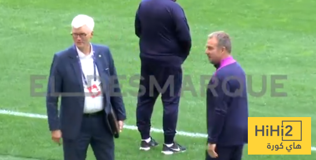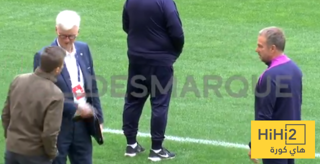 بعد بدء الحصة التدريبية الاخيرة لفريق برشلونة الخاصة بلقاء اتلتيكو مدريد غدا ، الثلاثاء ، شوهد المدرب هانسي فليك وهو يتحدث باستياء مع مندوبي الاتحاد الاوروبي لكرة القدم الحاضرين الآن في ملعب ميتروبوليتانو .