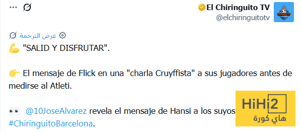 كانت تلك رسالة فليك إلى لاعبيه قبل مواجهة أتلتيكو مدريد المنتظرة ، في إياب ربع نهائي بطولة دوري أبطال أوروبا 2025-2026 ، والتي سيحاول من خلالها الفريق الكتالوني اقتناص الفوز بأكثر من هدفين على أمل التأهل للمربع الذهبي .