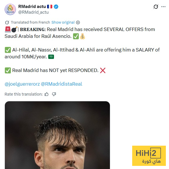 يواجه ريال مدريد موقفًا حساسًا بعد تلقيه عدة عروض رسمية من أندية الدوري السعودي للتعاقد مع المدافع الشاب راؤول أسينسيو، وسط اهتمام واضح من كبار الأندية هناك.