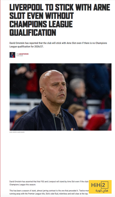 وحسبما أورد موقع «ديف أوكوب»، فإن إدارة النادي لا تنوي إقالة سلوت حتى في حال فشل الفريق في التأهل إلى دوري أبطال أوروبا الموسم المقبل، مؤكدة أن موقفها من المدرب لم يتغير رغم الضغوط.