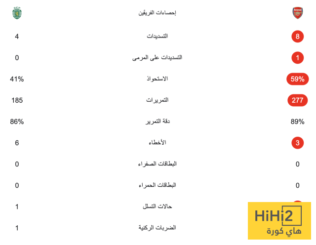 قدم لاعبو أرسنال شوطًا جيدًا أمام سبورتينغ لشبونة، حيث استحواذ على الكرة وكانوا الأخطر على المرمى.