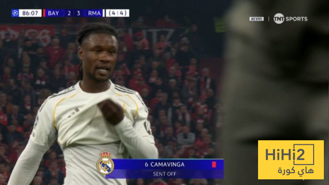 تلقى ادواردو كامافينغا لاعب ريال مدريد بطاقة حمراء بالانذار الثاني في الدقيقة 86 ضد بايرن ميونخ من عمر المباراة التي جمعت الفريقين مساء الاربعاء ضمن منافسات اياب ربع نهائي دوري الابطال .