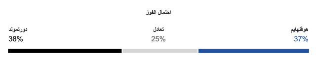نسبة فوز بوروسيا دورتموند 38%، ونسبة فوز هوفنهايم 37%، ونسبة التعادل 25%.