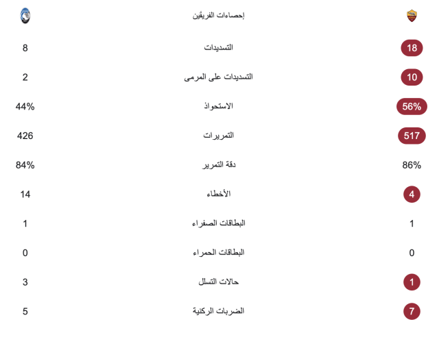 تعادل روما على ملعبه الأولمبيكو مع ضيفه أتالانتا بهدف لمثله في الأسبوع الثالث والثلاثين من الدوري الإيطالي.