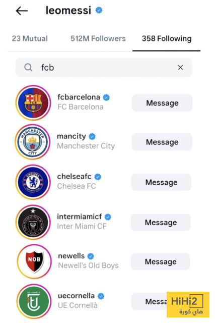 صورة – 6 أندية فقط يتابعها ليونيل ميسي على إنستغرام