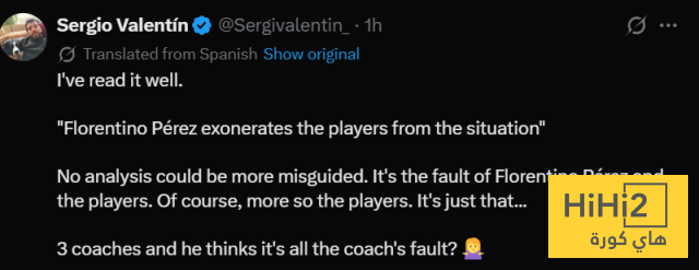 لا يمكن إجراء تحليل أكثر خطأً من هذا ، المسؤولية تقع على فلورنتينو بيريز وعلى اللاعبين ،وبالطبع، يتحمل اللاعبون الجزء الأكبر منها.