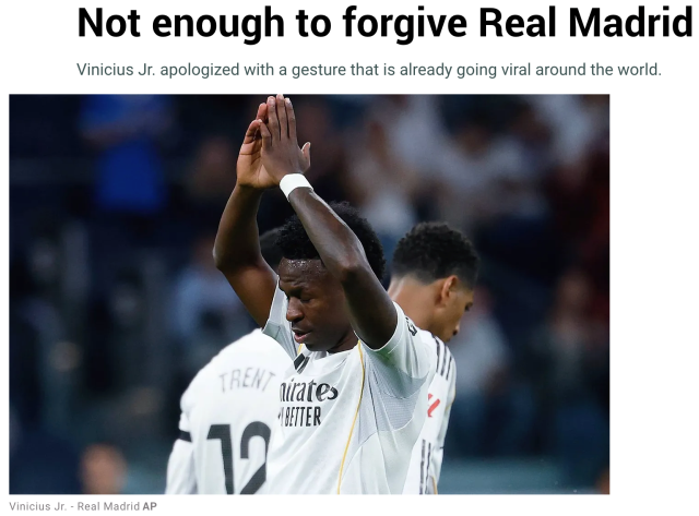 أكدت صحيفة ماركا أن إعتذار فينيسيوس جونيور لجمهور ريال مدريد في مباراة ألافيس لم يكفي ليتوقف الجمهور عن مهاجمة اللاعبين.