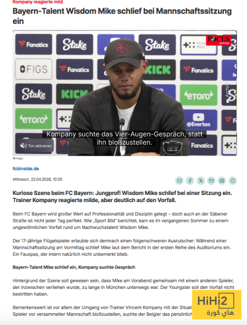 شهد نادي بايرن ميونخ موقفًا غير معتاد، بعدما نام اللاعب الشاب، ويزدوم مايك، خلال اجتماع فني للفريق كان يقوده المدرب فينسنت كومباني.