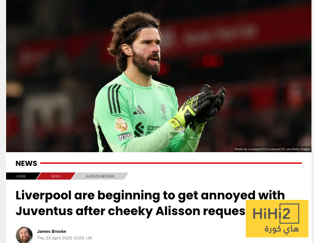 أفادت تقارير صحفية بأن نادي ليفربول يشعر بالإحباط من يوفنتوس بسبب طريقة تعامله في مفاوضات التعاقد مع الحارس البرازيلي أليسون بيكر خلال فترة الانتقالات الصيفية.