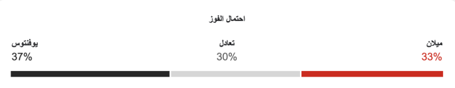 نسبة فوز يوفنتوس 37%، ونسبة فوز ميلان 33%، ونسبة التعادل 30%.