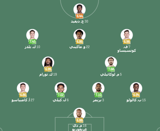 خط الوسط: مانويل لوكاتيلي – كيفرين تورام – فرانشيسكو كونسيساو – وستون ماكيني – كينان يلدز.
