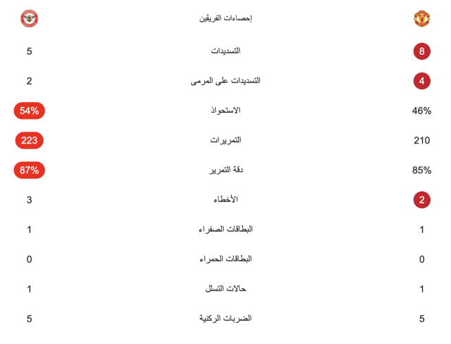 استطاع اليونايتد أن يتقدم بهدفين نظيفين عن طريق كاسيميرو في الدقيقة 11، ثم بنجامين سيسكو في الدقيقة 43.