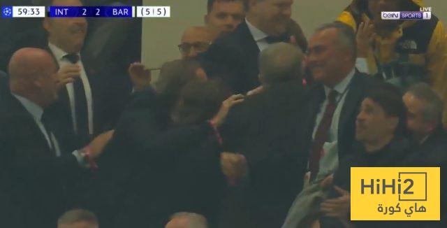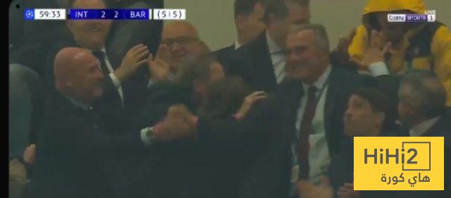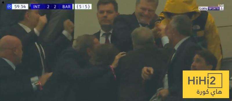خوان لابورتا رئيس برشلونة احتفل مع لاعبه جول كوندي بهدف أولمو حيث التفت إليه ليصافحه ويشاركه فرحته بالهدف.