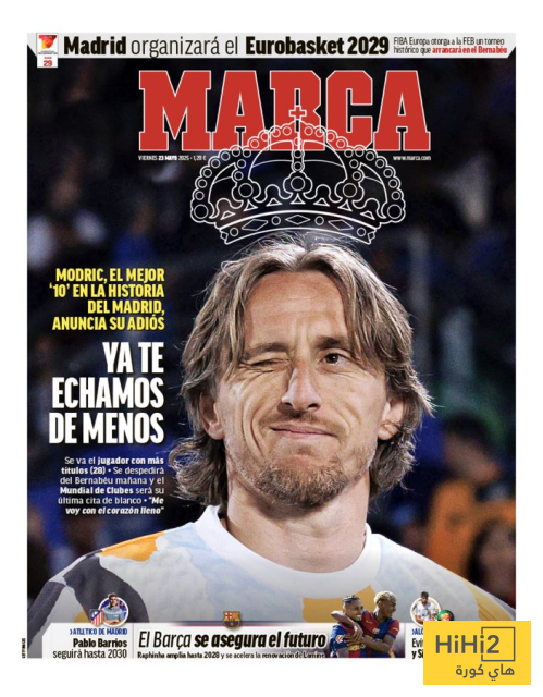 هاي كورة- تصدر لوكا مودريتش نجم ريال مدريد غلاف صحيفة ماركا الاسبانية التي ابدعت في وداعه، حيث أعلن الكرواتي أمس عن رحيله بشكل رسمي عن النادي الابيض بعد نهاية بطولة كأس العالم للاندية المقرر انطلاقها في منتصف شهر يونيو المقبل.