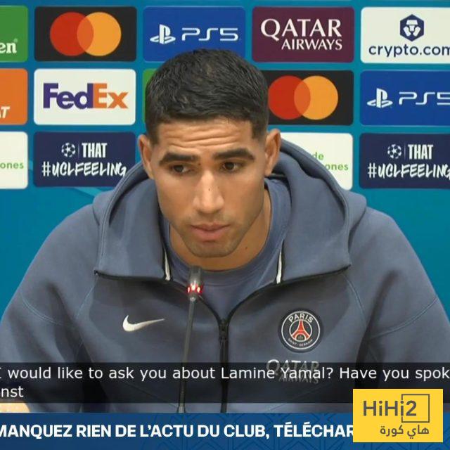 هاي كورة- أكد النجم المغربي أشرف حكيمي، لاعب باريس سان جيرمان، أن فريقه مستعد للحد من خطورة موهبة برشلونة الشابة لامين يامال، قبل مواجهة الفريقين غداً الأربعاء في دوري أبطال أوروبا.