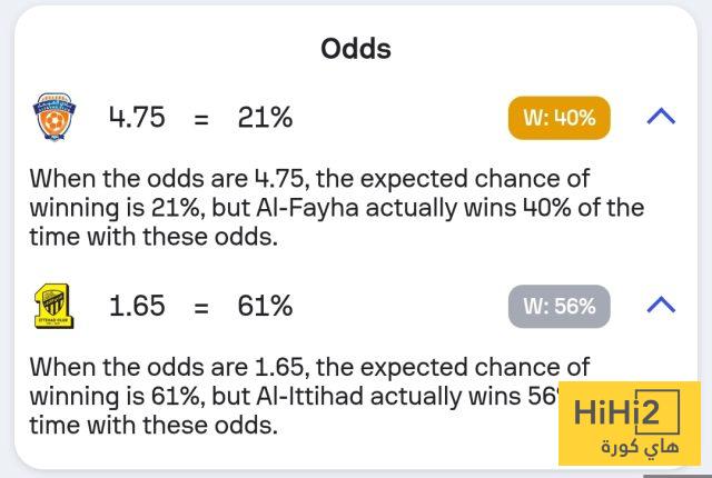 نسبة فوز الاتحاد تصل إلى 61% ، بينما الفيحاء 21% أما التعادل لا يتجاوز الـ 18%.