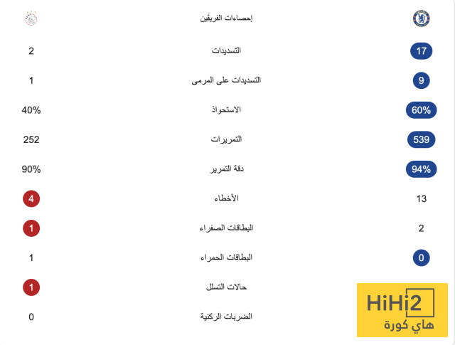 هاي كورة – قدم تشيلسي عرضًا رائعًا في مباراته مع أياكس، حيث انتصر عليه بخماسية مقابل هدف في اللقاء الذي جمع بينهما في الجولة الثالثة من دوري أبطال أوروبا.