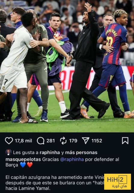 هاي كورة- تفاعل رافينيا ، نجم برشلونة ، على منشور أحد المعجبين الذي نشر صورته اثناء شجار فينيسيوس جونيور مع لامين يامال ودفاعه عن زميله في الفريق أمام مواطنه البرازيلي .