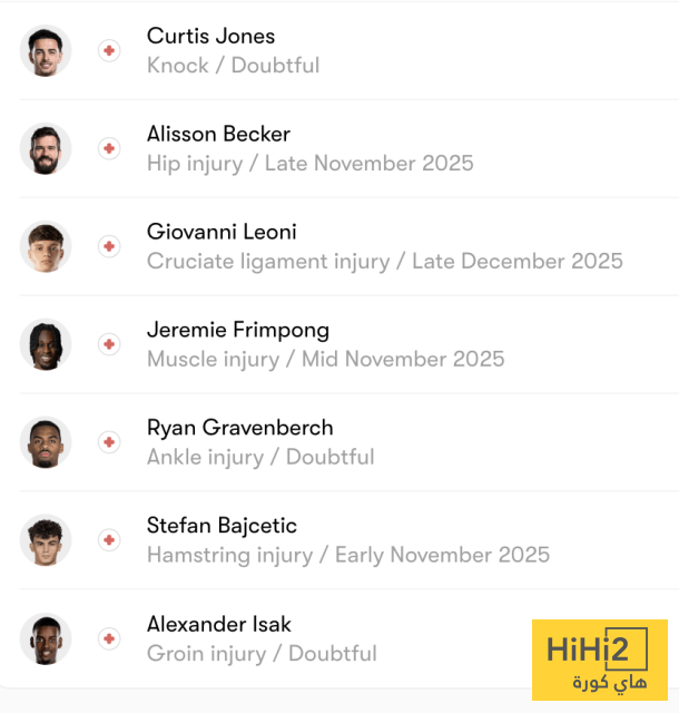 وسيدخل أرني سلوت المباراة بتشكيلة ينقصها الكثير من العناصر الهامة في مختلف المراكز مثل أليسون بيكر ، وكورتيس جونز ، وألكساندر إيزاك .