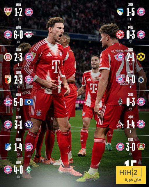 الفوز على ليفركوزن رفع رصيد بايرن ميونيخ الى 15 انتصارا في كافة البطولات المحلية و القارية.