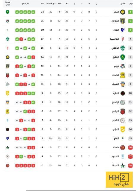 الهلال بـ 20 نقطة من أصل 24 ، سجل 22 هدفًا واستقبلت شباكه 8 أهداف .