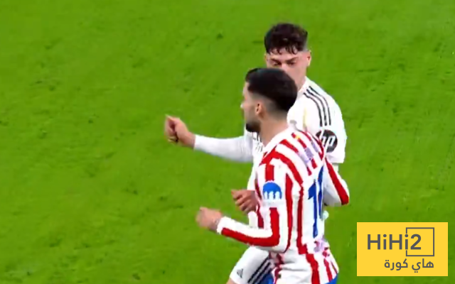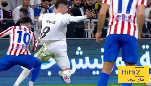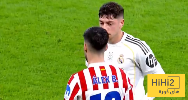 اليكس بينيا لاعب اتلتيكو مدريد حاول عرقلة نجم الريال فيديريكو فالفيردي بسحب قميصه للخلف .